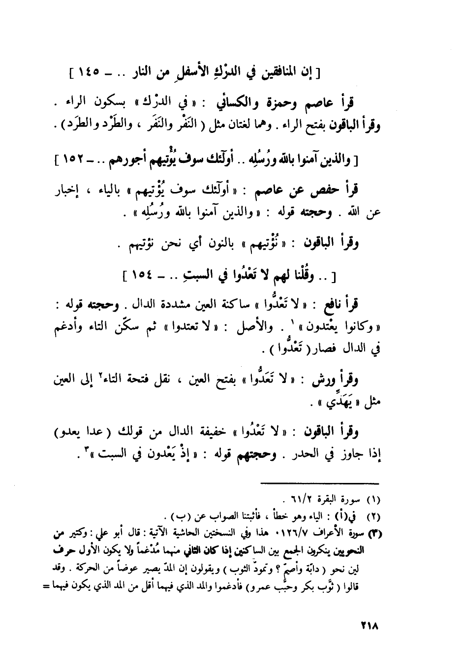 وَقَرَأَ الْبَاقُونَ / نؤتيهم / بالنُّون أَي نَحن نؤتيهم