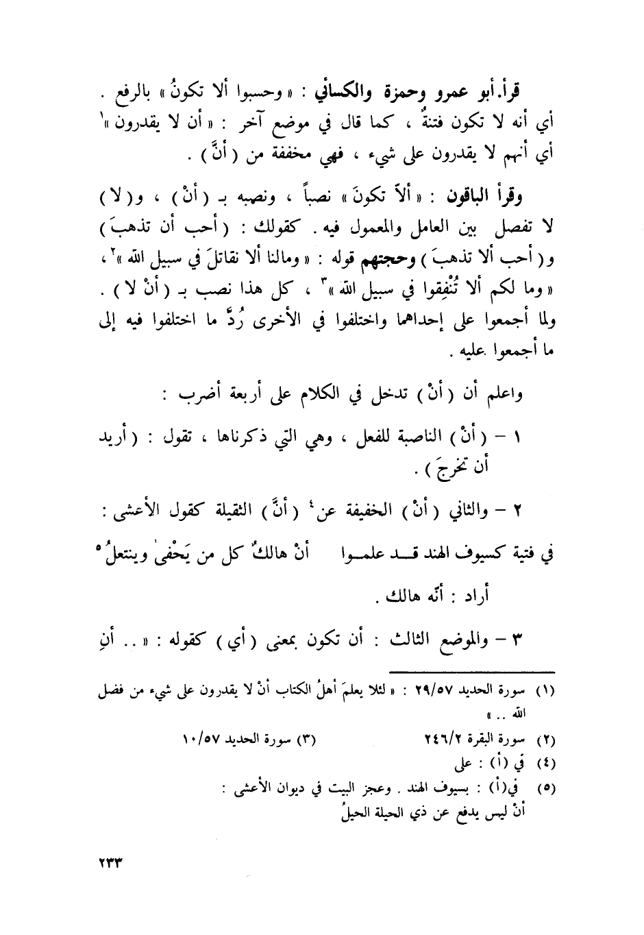 1 - أَن الناصبة للْفِعْل وَهِي الَّتِي ذَكرنَاهَا تَقول أُرِيد أَن تخرج