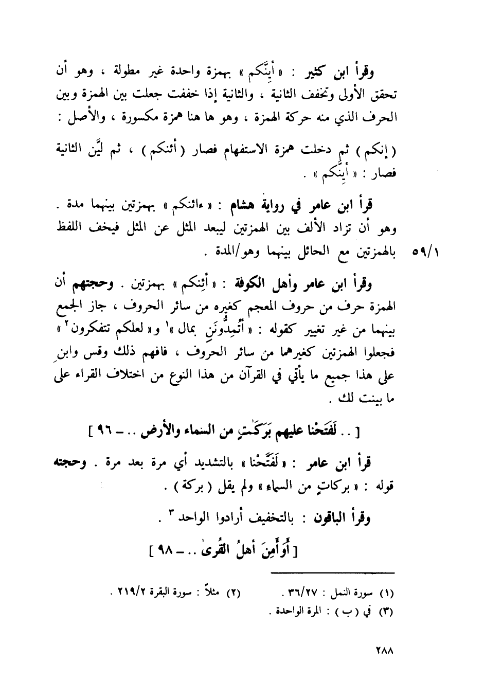 وَقَرَأَ ابْن عَامر وَأهل الْكُوفَة {أئنكم} بهمزتين وحجتهم أَن الْهمزَة حرف من حُرُوف المعجم كَغَيْرِهِ من سَائِر الْحُرُوف جَازَ الْجمع بَينهمَا من غير تَغْيِير كَقَوْلِه {أتمدونن بِمَال} و {لَعَلَّكُمْ تتفكرون} فَجعلُوا الهمزتين كغيرهما من سَائِر الْحُرُوف فَافْهَم ذَلِك وَقس وَابْن على هَذَا جَمِيع مَا يَأْتِي فِي الْقُرْآن من هَذَا النَّوْع من اخْتِلَاف الْقُرَّاء على مَا بيّنت لَك