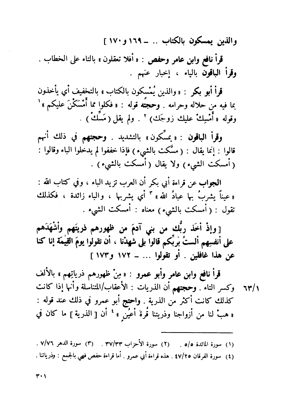 {وَالَّذين يمسكون بِالْكتاب} 169 و 170
