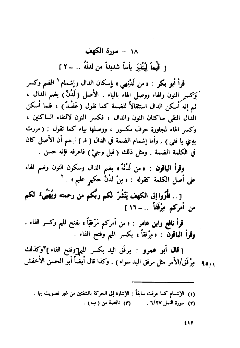 قَرَأَ نَافِع وَابْن عَامر {من أَمركُم مرفقا} بِفَتْح الْمِيم وَكسر الْفَاء وَقَرَأَ الْبَاقُونَ {مرفقا} بِكَسْر الْمِيم وَفتح الْفَاء