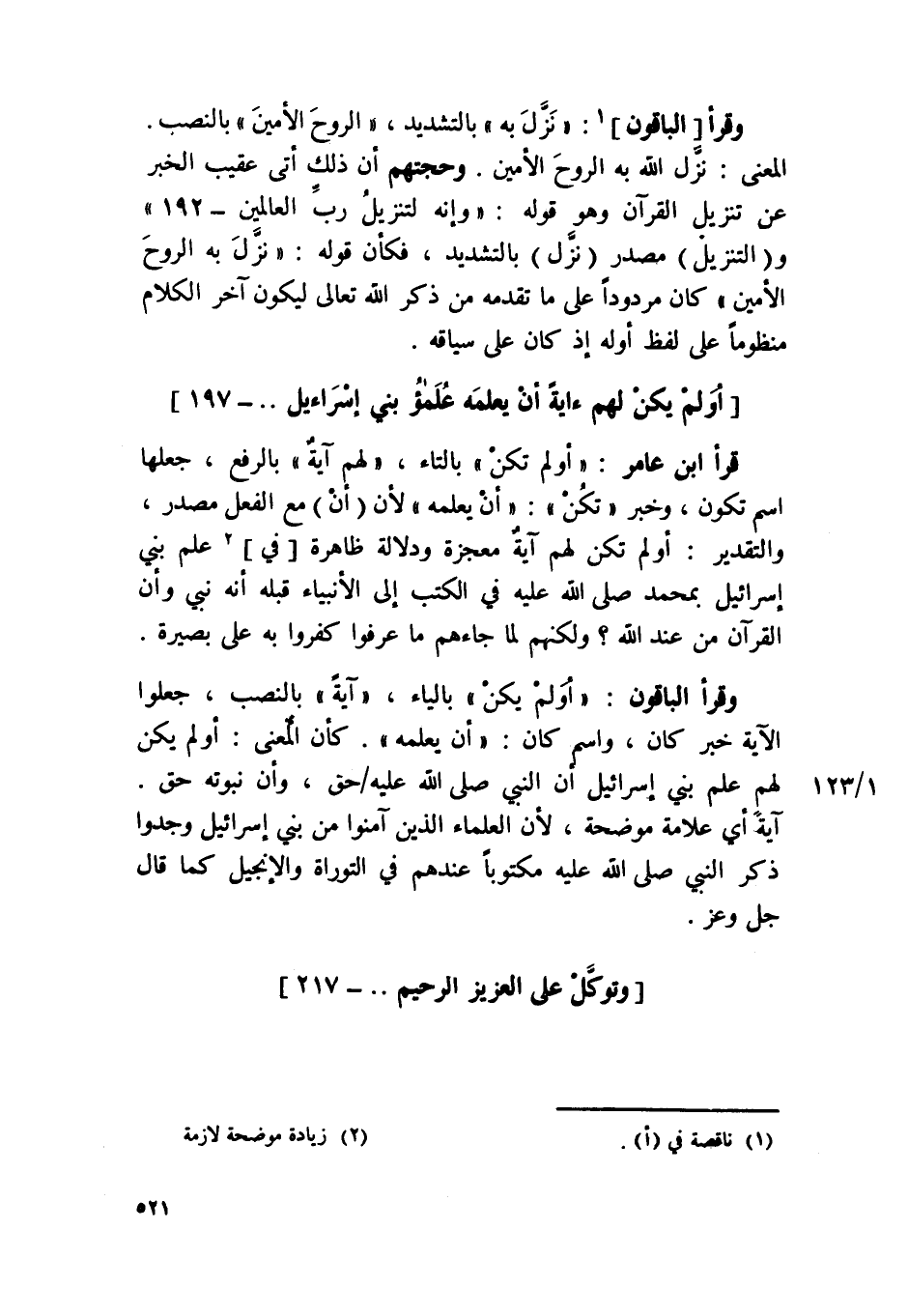 {أَو لم يكن لَهُم آيَة أَن يُعلمهُ عُلَمَاء بني إِسْرَائِيل} 197