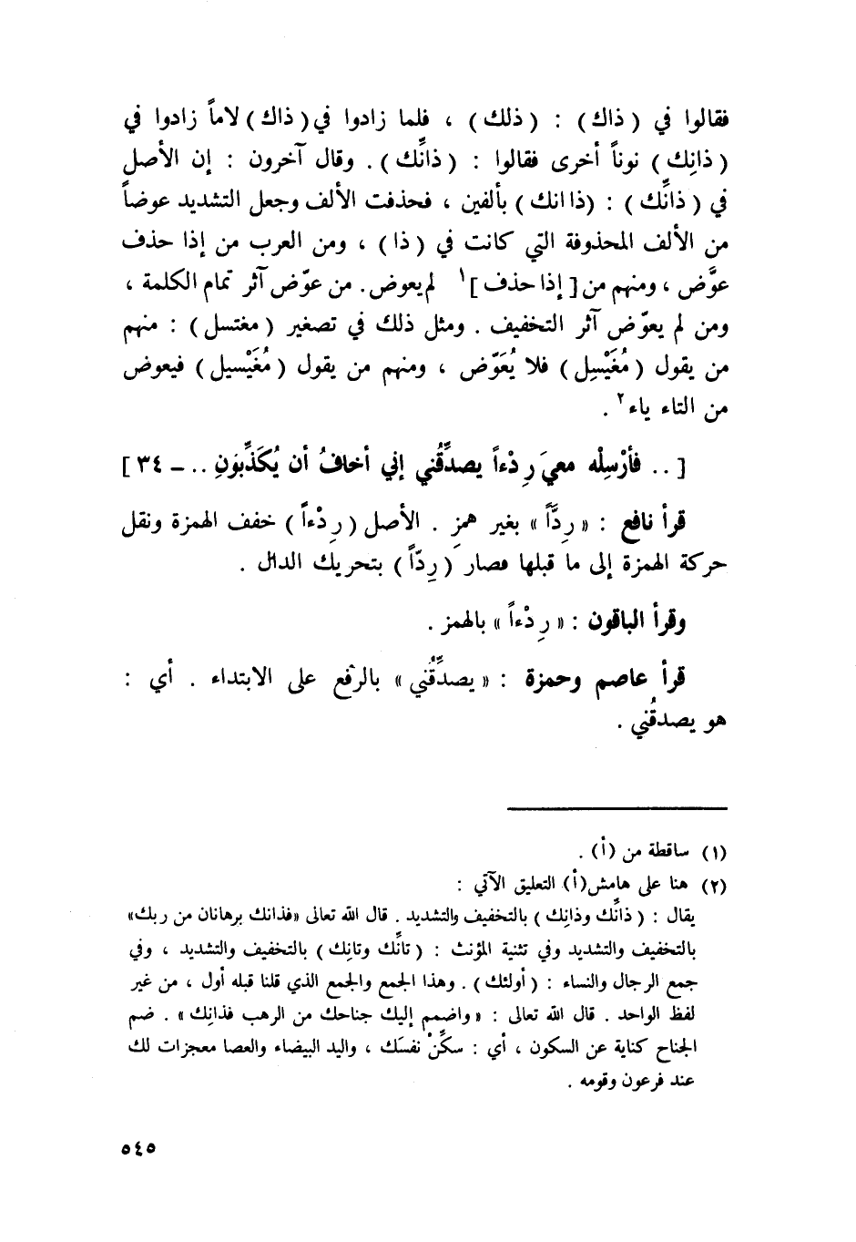 قَرَأَ نَافِع ردا بِغَيْر همز الأَصْل ردْءًا خفف الْهمزَة وَنقل حَرَكَة الْهمزَة إِلَى مَا قبلهَا فَصَارَ ردا بتحريك الدَّال
