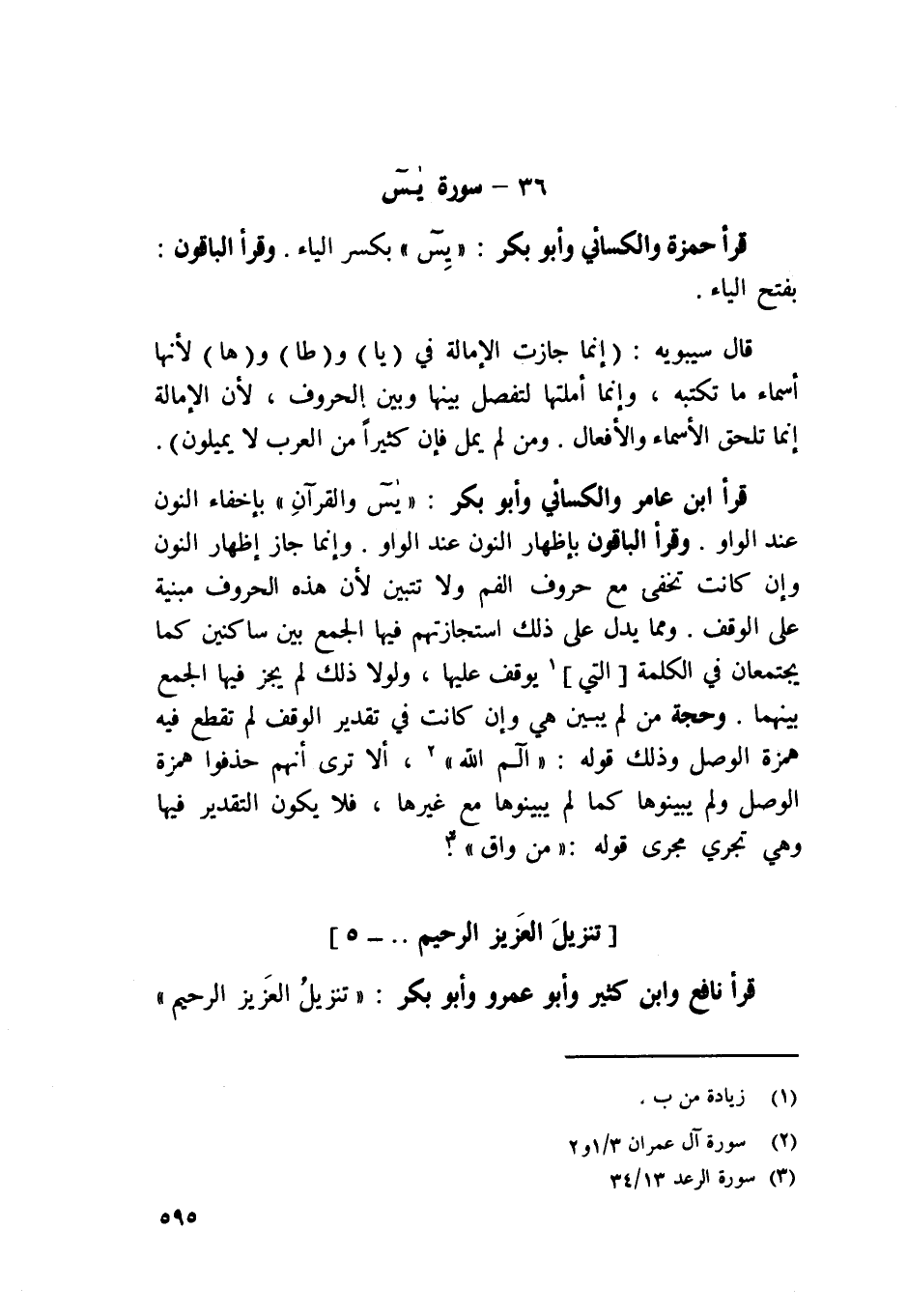 قَرَأَ نَافِع وَابْن كثير وَأَبُو عَمْرو وَأَبُو بكر {تَنْزِيل الْعَزِيز الرَّحِيم}