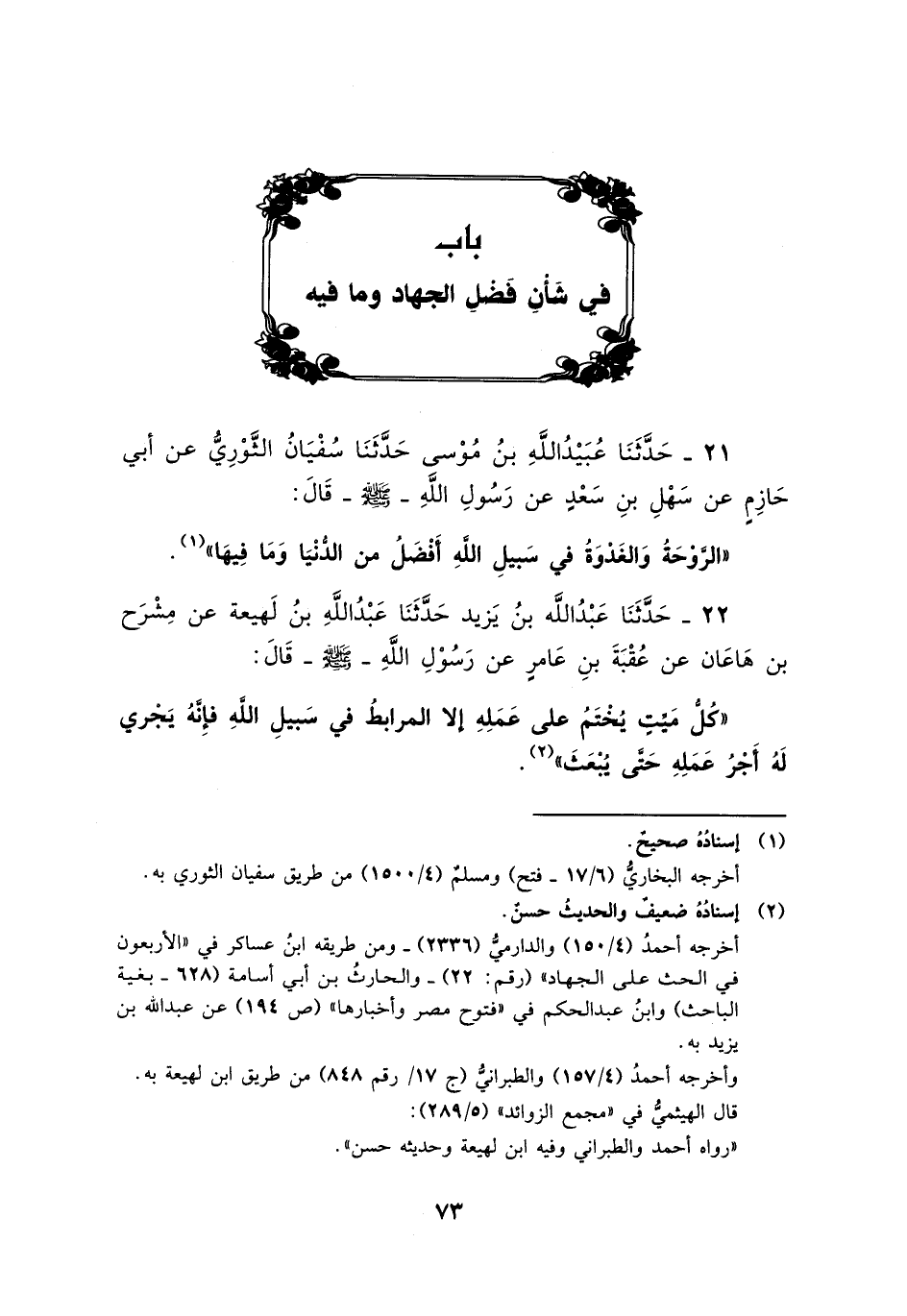 §بَابٌ فِي شَأْنِ فَضْلِ الْجِهَادِ وَمَا فِيهِ