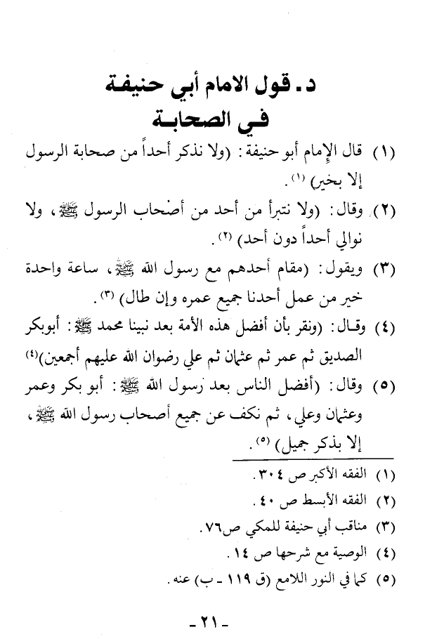 1 - قال الإمام أبو حنيفة: «ولا نذكر أحدًا من صحابة رسول الله إلا بخير» (¬1).
