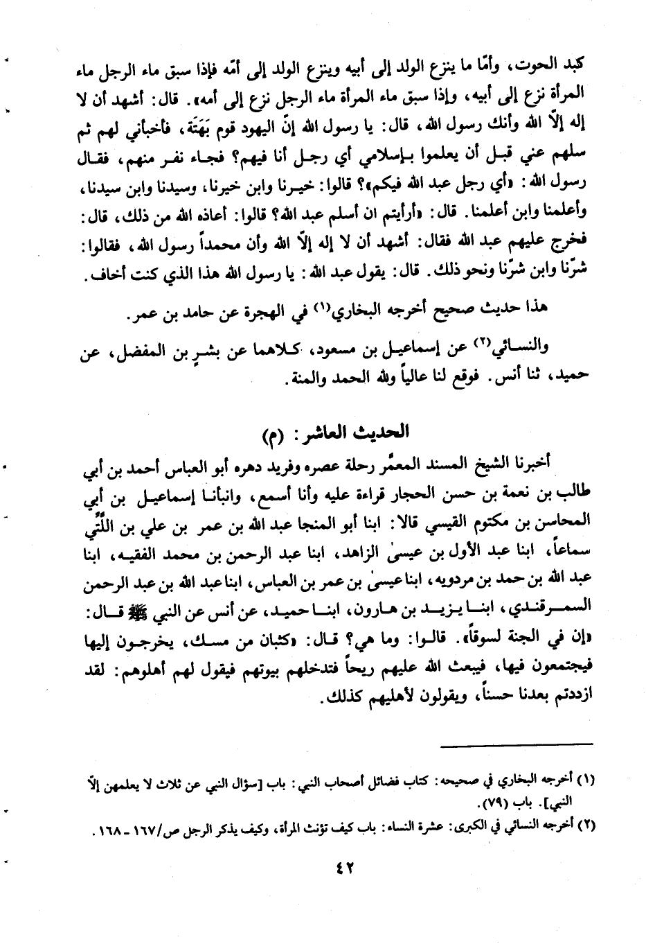 هَذَا حَدِيثٌ صَحِيحٌ أَخْرَجَهُ الْبُخَارِيُّ فِي الْهِجْرَةِ عَنْ حَامِدِ بْنِ عُمَرَ، وَالنَّسَائِيِّ عَنْ إِسْمَاعِيلَ بْنِ مَسْعُودٍ كِلاهُمَا عَنْ بِشْرِ بْنِ الْمُفَضَّلِ، عَنْ حُمَيْدٍ، ثنا أَنَسٌ فَوَقَعَ لَنَا عَالِيًا، وَلِلَّهِ الْحَمْدُ وَالْمِنَّةُ.