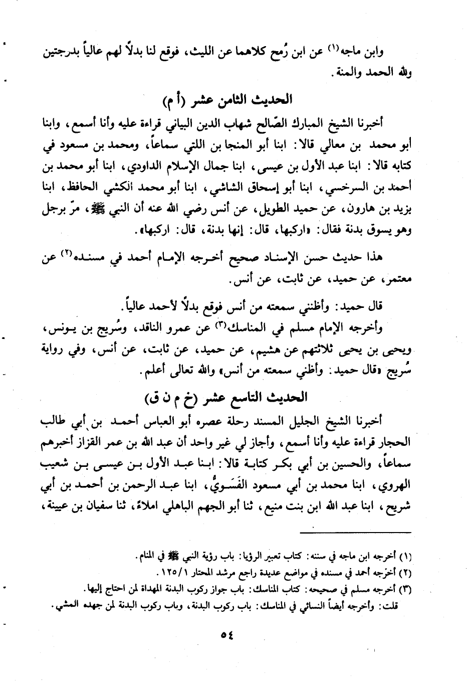 قَالَ حُمَيْدٌ: وَأَظُنُّنِي سَمِعْتُهُ مِنْ أَنَسٍ فَوَقَعَ بَدَلا لأَحْمَدَ عَالِيًا، وَأَخْرَجَهُ الإِمَامُ مُسْلِمٌ فِي الْمَنَاسِكِ , عَنْ عَمْرٍو النَّاقِدِ، وَسُرَيْجِ بْنِ يُونُسَ، وَيَحْيَى بْنِ يَحْيَى ثَلاثَتُهُمْ، عَنْ هُشَيْمٍ، عَنْ حُمَيْدٍ، عَنْ ثَابِتٍ، عَنْ أَنَسٍ، وَفِي رِوَايَةٍ قَالَ سُرَيْجٌ، قَالَ حُمَيْدٌ: وَأَظُنُّنِي سَمِعْتُهُ مِنْ أَنَسٍ وَاللَّهُ تَعَالَى أَعْلَمُ