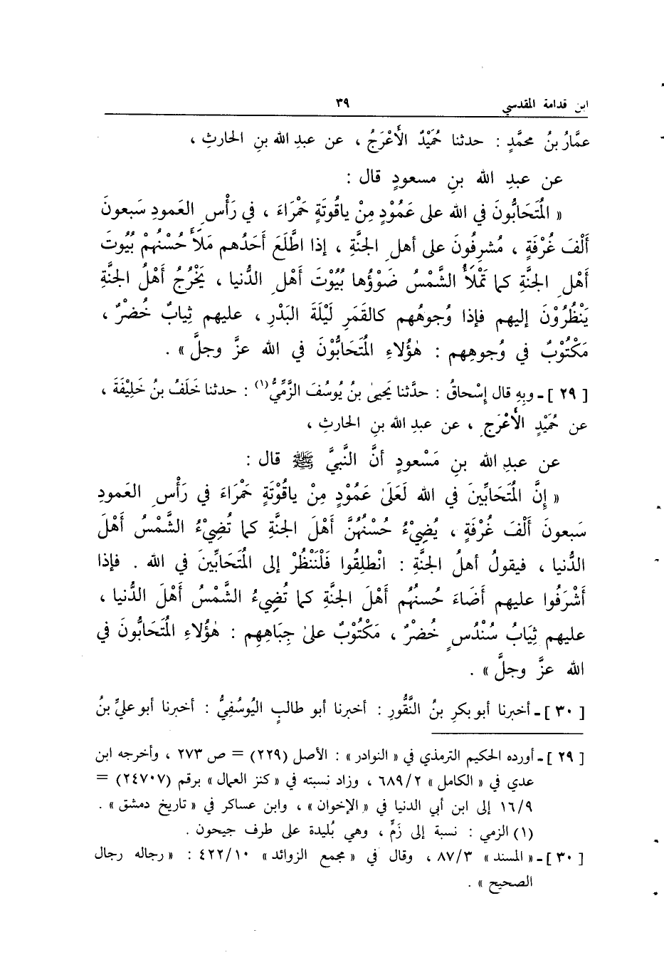 30 - أخبرنَا أَبُو بكر بن النقور أخبرنَا أَبُو طَالب اايوسفي هَؤُلَاءِ المتحابون فِي