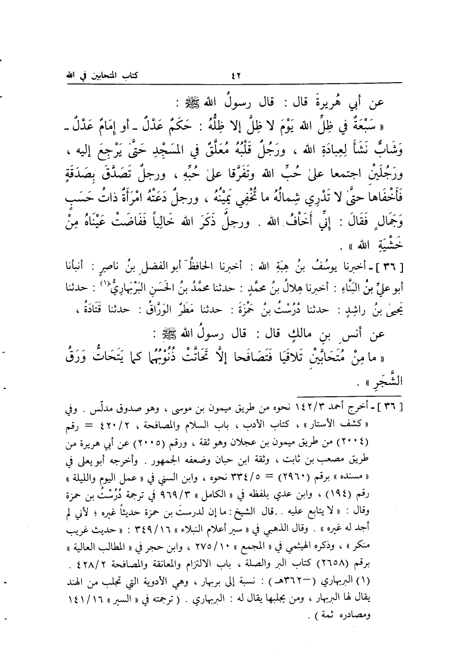 36 - أخبرنَا يُوسُف بن هبة الله أخبرنَا الْحَافِظ أَبُو الْفضل بن نَاصِر أَنبأَنَا أَبُو عَليّ بن الْبناء أخبرنَا هِلَال بن مُحَمَّد حَدثنَا مُحَمَّد بن الْحسن الببهاري حَدثنَا يحيى بن رَاشد حَدثنَا درست بن حَمْزَة حَدثنَا مطر الْوراق حَدثنَا قَتَادَة