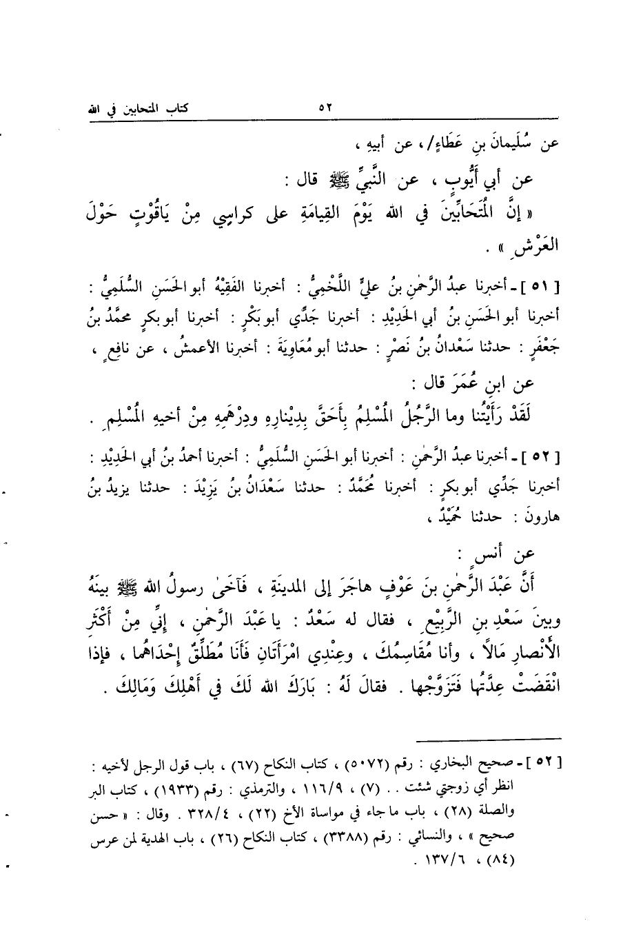 52 - أخبرنَا عبد الرَّحْمَن أخبرنَا أَبُو الْحسن السّلمِيّ أخبرنَا أَحْمد بن أبي الْحَدِيد أخبرنَا جدي أَبُو بكر أخبرنَا مُحَمَّد حَدثنَا سَعْدَان بن يزِيد حَدثنَا يزِيد بن هَارُون حَدثنَا حميد