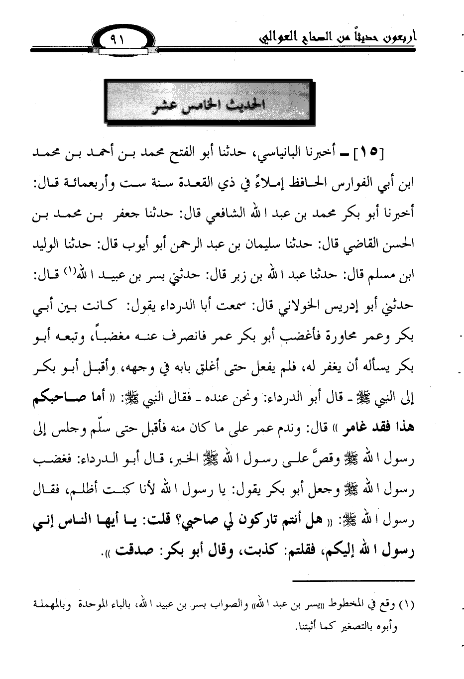 الحديث الخامس عشر