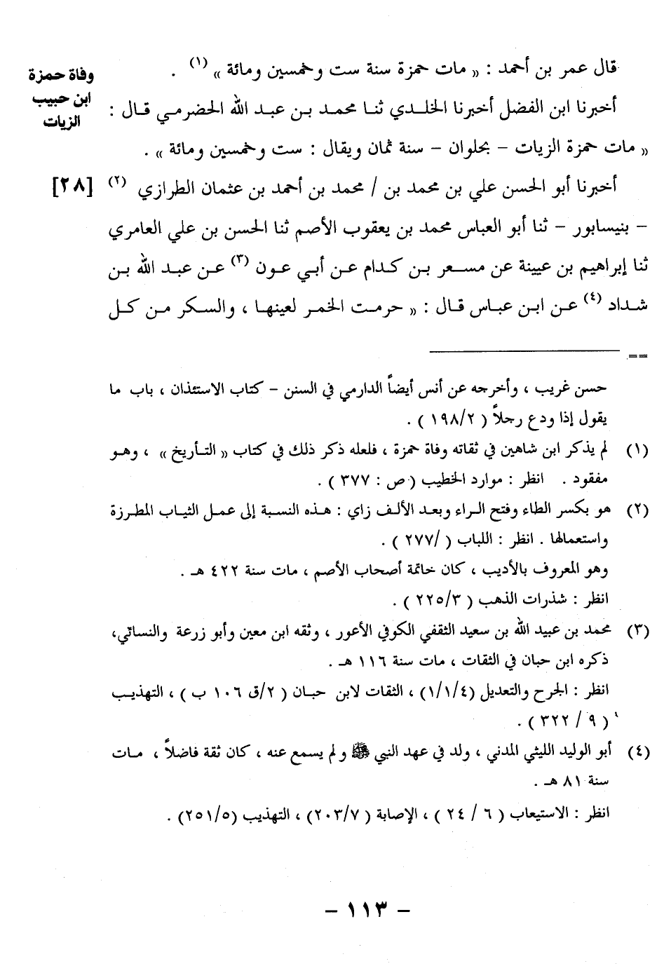 1 لم يذكر ابن شاهين في ثقاته وفاة حمزة، فلعله ذكر ذلك في كتاب "التاريخ"، وهو مفقود، انظر: موارد الخطيب ص: 377.