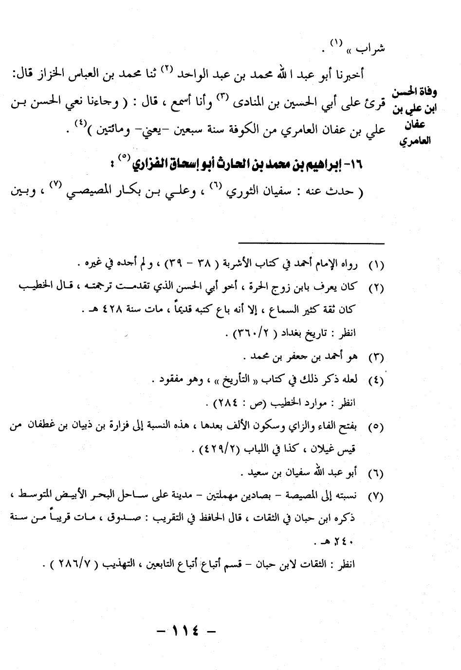 16- إِبْرَاهِيمُ بْنُ مُحَمَّدِ بْنِ الْحَارِثِ أَبُو إِسْحَاقَ الْفَزَارِيُّ5: