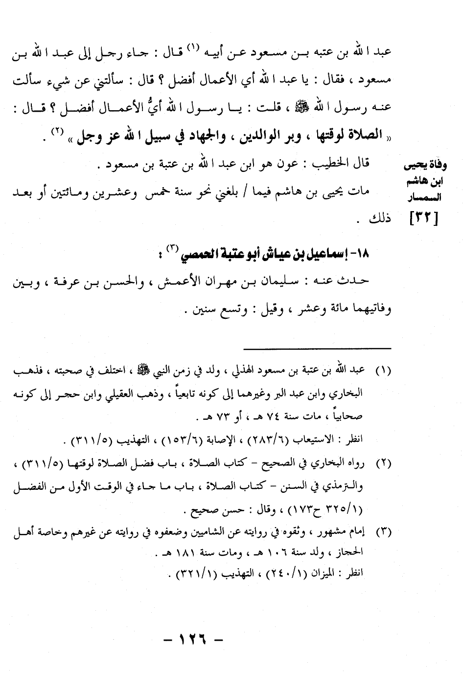 2 رواه البخاري في الصحيح – كتاب الصلاة، باب فضل الصلاة لوقتها 5/311، والترمذي في السنن – كتاب الصلاة، باب ما جاء في الوقت الأول من الفضل 1/325 ح173، وقال: حسن صحيح.