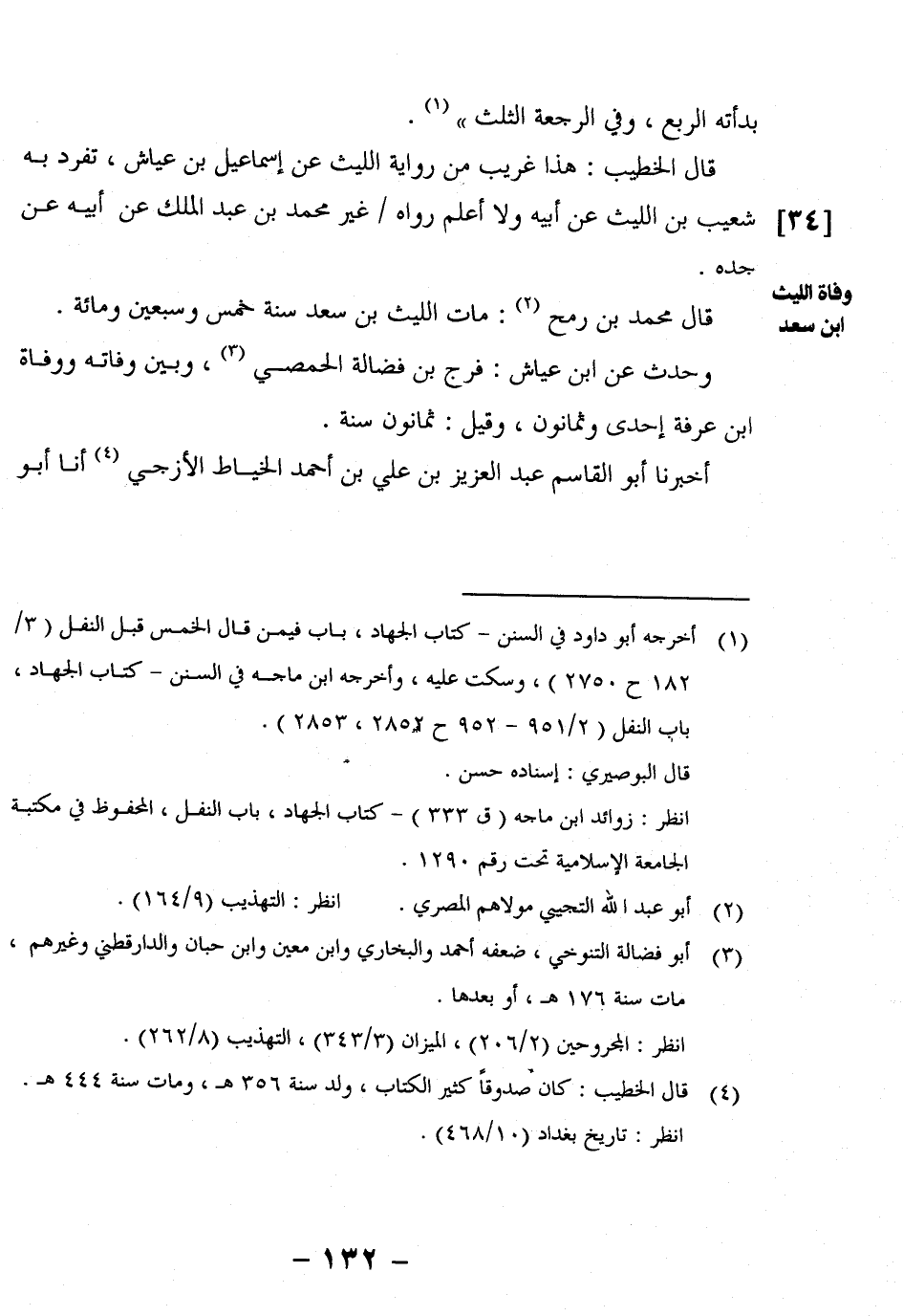 قَالَ مُحَمَّدُ بْنُ رُمْحٍ2: مَاتَ اللَّيْثُ بْنُ سَعْدٍ سَنَةَ خَمْسٍ وَسَبْعِينَ وَمِائَةٍ.