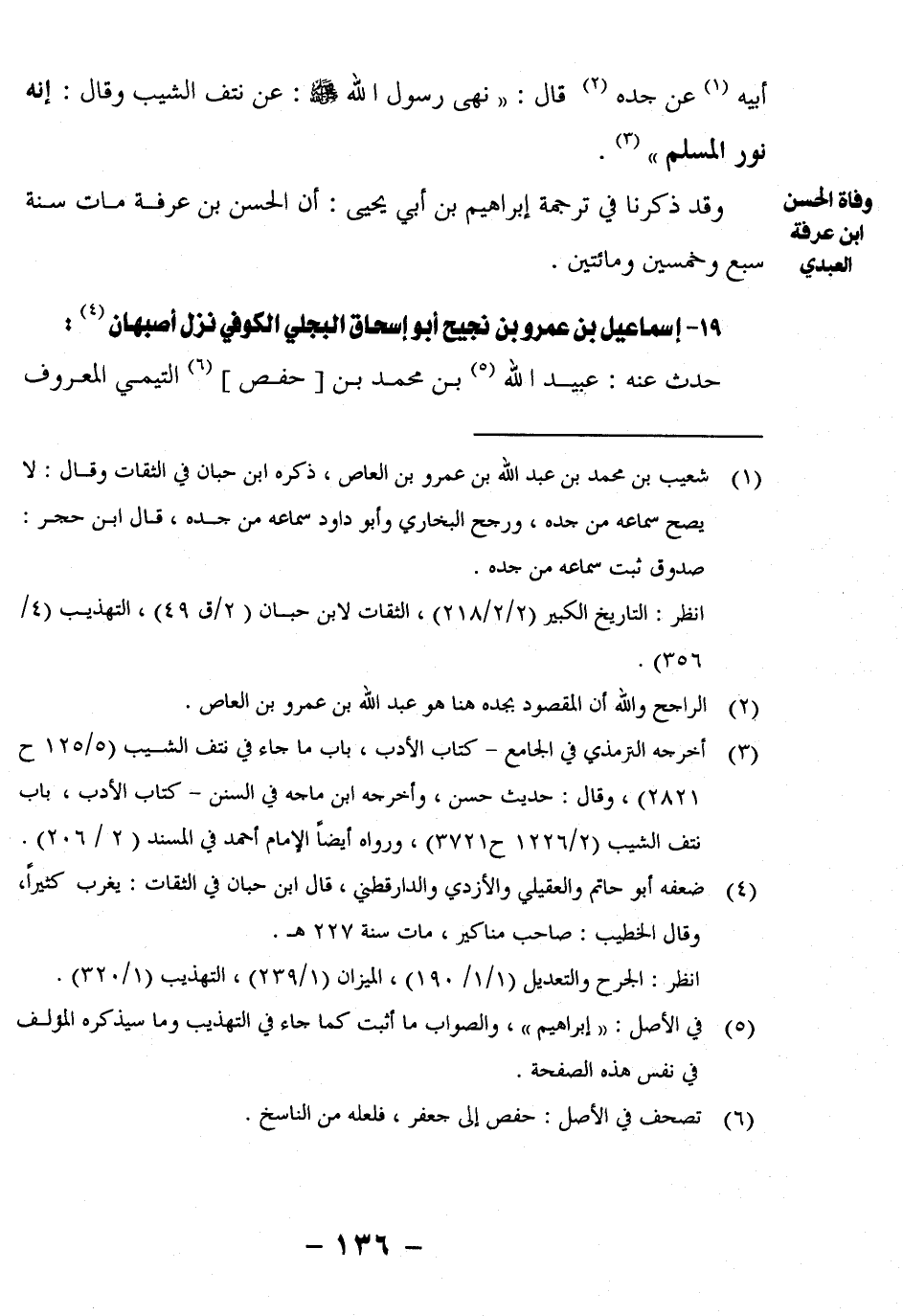 1 شعيب بن محمد بن عبد الله بن عمرو بن العاص، ذكره ابن حبان في الثقات وقال: لا يصح سماعه من جده، ورجح البخاري وأبو داود سماعه من جده، قال ابن حجر: صدوق ثبت سماعه من جده.