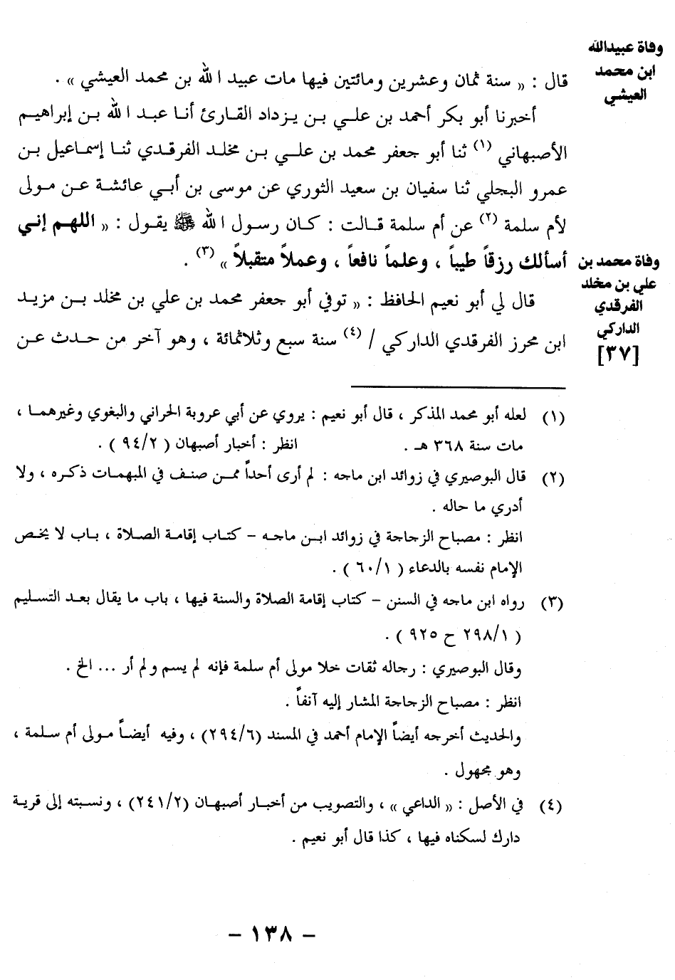 أَخْبَرَنَا أَبُو بَكْرٍ أَحْمَدُ بْنُ عَلِيِّ بْنِ يَزْدَادَ الْقَارِئُ أنا عَبْدُ اللَّهِ بْنُ إِبْرَاهِيمَ الأَصْبَهَانِيُّ1 ثنا أَبُو جَعْفَرٍ مُحَمَّدُ بْنُ عَلِيِّ بْنِ مَخْلَدٍ الْفَرْقَدِيُّ ثنا إِسْمَاعِيلُ بْنُ عَمْرٍو الْبَجَلِيُّ ثنا سُفْيَانُ بْنُ سَعِيدٍ الثَّوْرِيُّ عَنْ مُوسَى بْنِ أَبِي عَائِشَةَ عَنْ مَوْلًى لأُمِّ سَلَمَةَ2 عَنْ أُمِّ سَلَمَةَ قَالَتْ: كَانَ رَسُولُ اللَّهِ صَلَّى اللَّهُ عَلَيْهِ وَسَلَّمَ يَقُولُ: "اللَّهُمَّ إِنِّي أَسْأَلُكَ رِزْقًا طَيِّبًا، وَعِلْمًا نَافِعًا، وَعَمَلا مُتَقَبَّلا" 3.