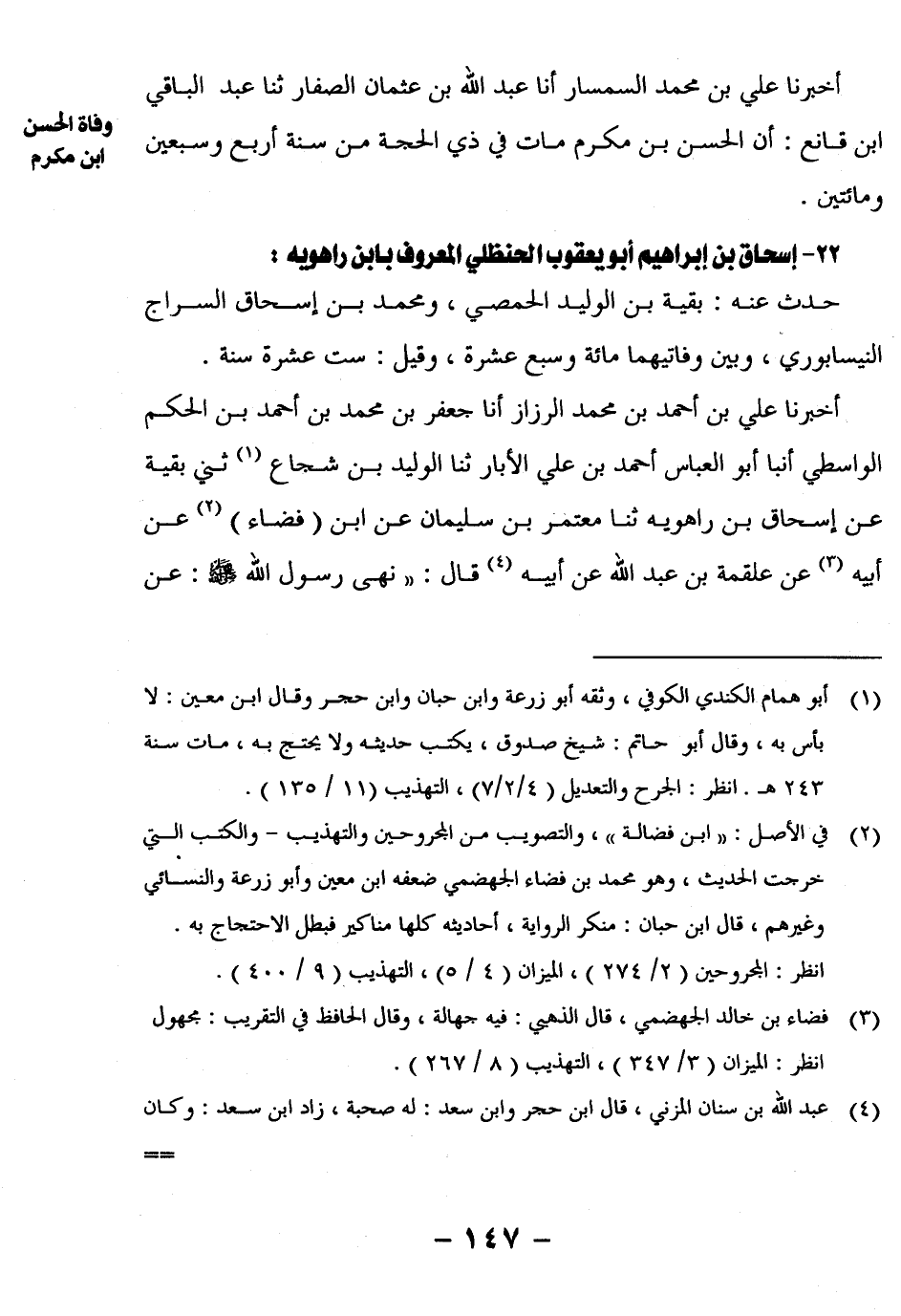 22- إِسْحَاقُ بْنُ إِبْرَاهِيمَ أَبُو يَعْقُوبَ الْحَنْظَلِيُّ الْمَعْرُوفُ بِابْنِ رَاهَوَيْهِ: