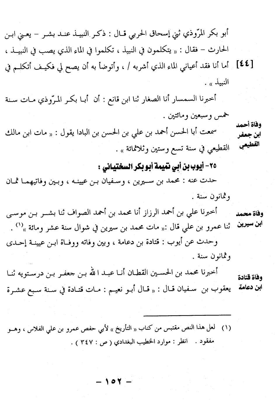 1 لعل هذا النص مقتبس من كتاب "التاريخ"لأبي حفص عمرو بن علي الفلاس، وهو مفقود، انظر: موارد الخطيب ص: 347.
