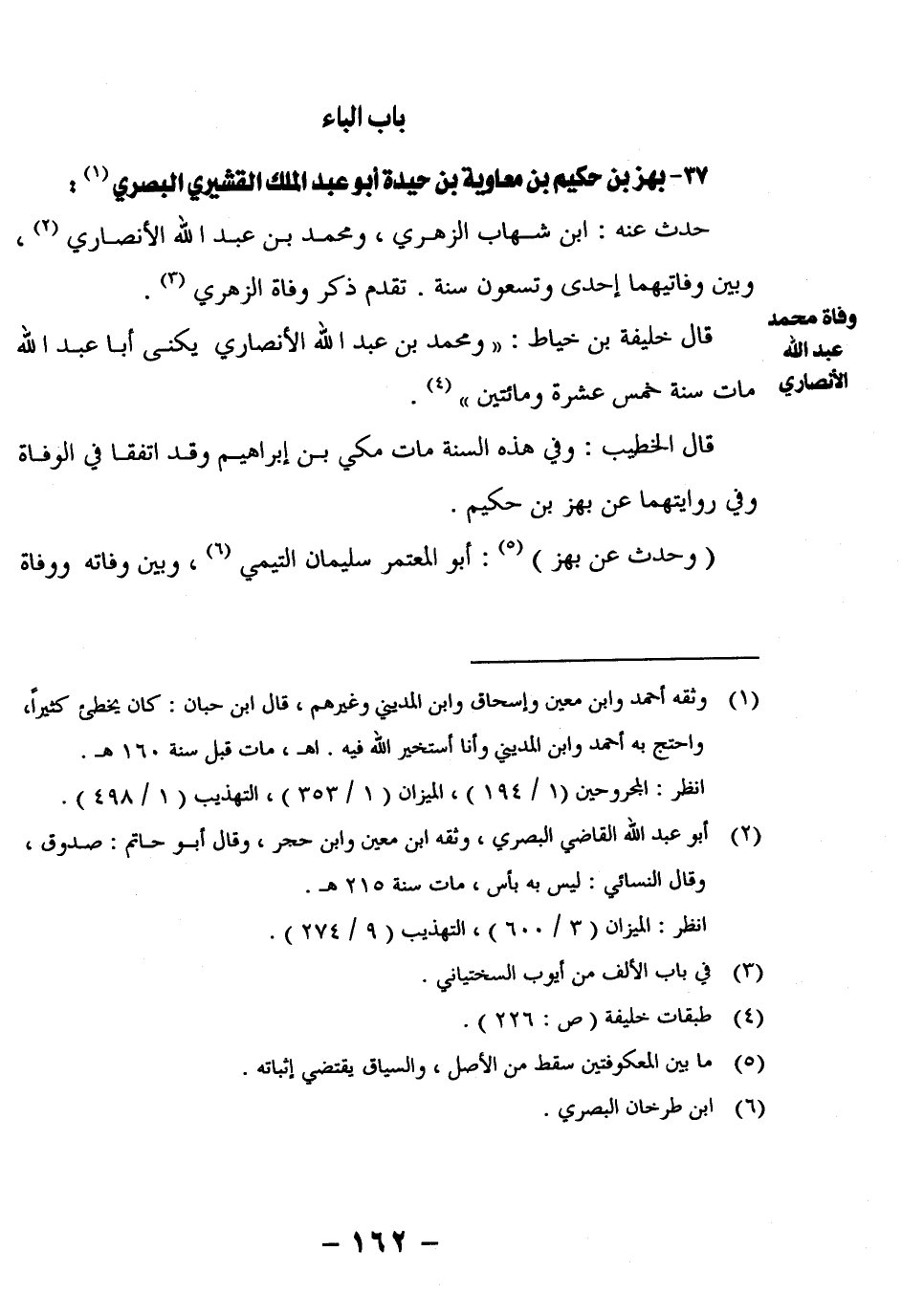 37- بَهْزُ بْنُ حَكِيمِ بْنِ مُعَاوِيَةَ بْنِ حَيْدَةَ أَبُو عَبْدِ الْمَلِكِ الْقُشَيْرِيُّ الْبَصْرِيُّ1: