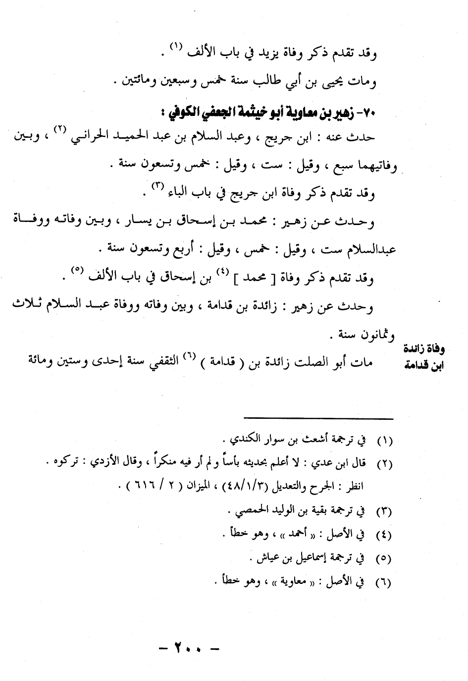وَحَدَّثَ عَنْ زُهَيْرٍ: زَائِدَةُ بْنُ قُدَامَةَ، وَبَيْنَ وَفَاتِهِ وَوَفَاةِ عَبْدِ السَّلامِ ثَلاثٌ وَثَمَانُونَ سَنَةً.
