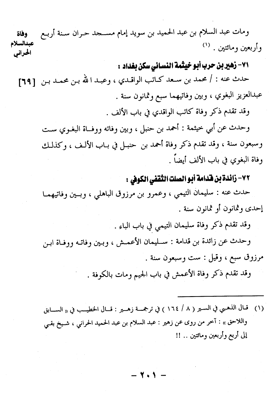 71- زُهَيْرُ بْنُ حَرْبٍ أَبُو خَيْثَمَةَ النَّسَائِيُّ سَكَنَ بَغْدَادَ: