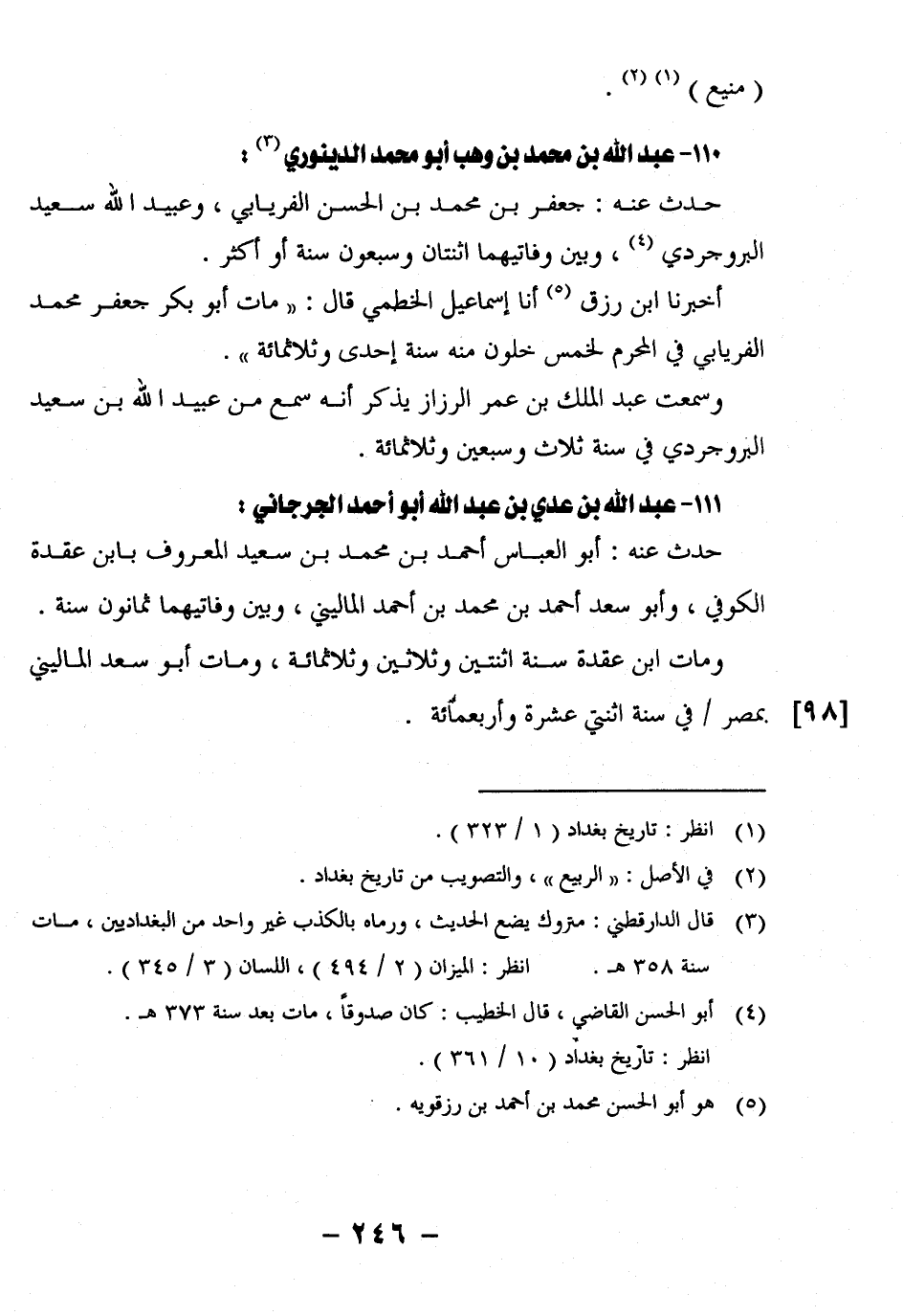 111- عَبْدُ اللَّهِ بْنُ عَدِيِّ بْنِ عَبْدِ اللَّهِ أَبُو أَحْمَدَ الْجُرْجَانِيُّ: