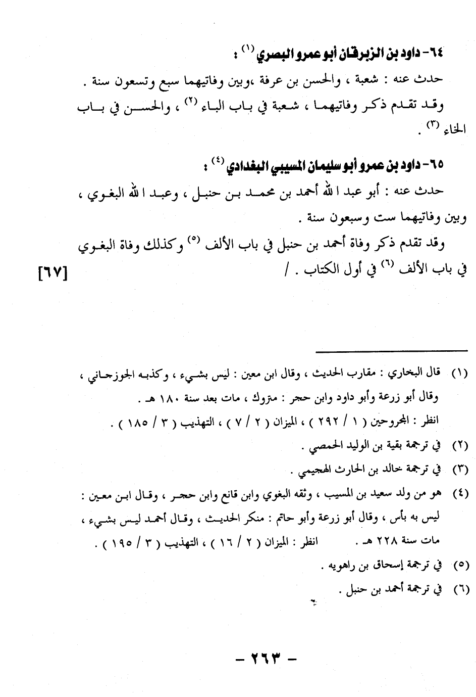 2 هنا سقط تقديره والله أعلم: " ... ذكر وفاة البغوي في باب الألف من أحمد بن حنبل ... ، وتوفي زهير بن حرب سنة أربع وثلاثين ومائتين ... "، وذلك طردا على منهج المؤلف في الكتاب كله، وسقط بعده كلام من آخر صفحة 108 وبداية صفحة 109، ولم أستطع تقدير السقط والله أعلم.