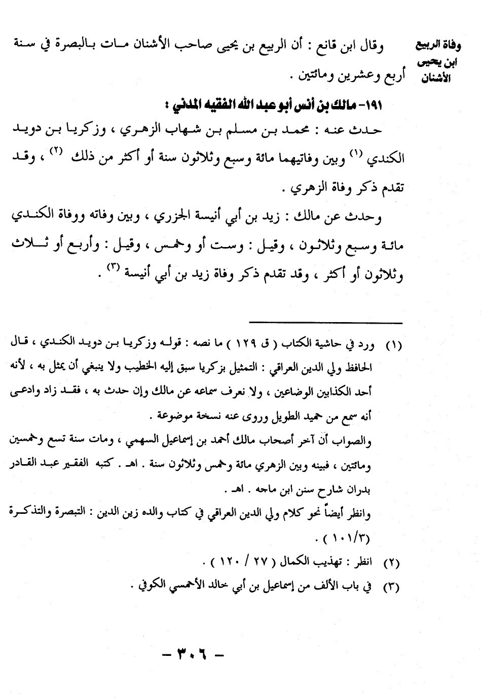191- مالك بن أنس أبو عبد الله الفقيع المدني: