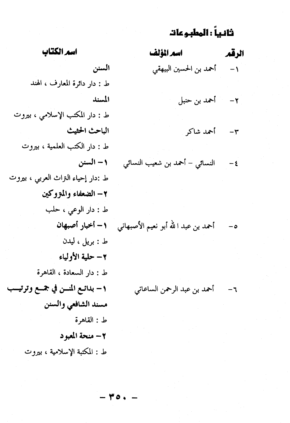2- الضعفاء والمتروكون ط: دار الوعي، حلب