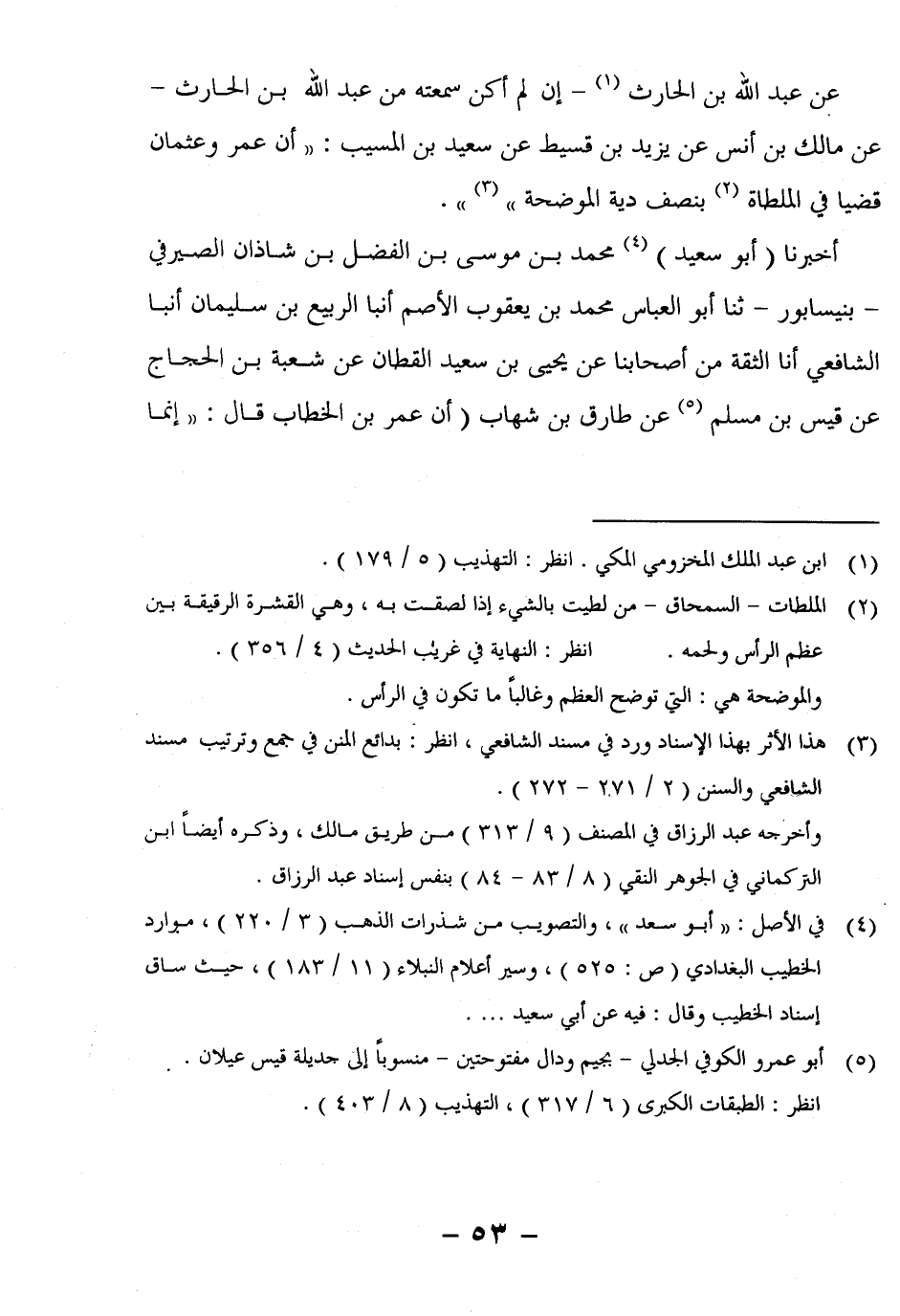 أَخْبَرَنَا (أَبُو سَعِيدٍ) 4 مُحَمَّدُ بْنُ مُوسَى بْنِ الْفَضْلِ بْنِ شَاذَانَ الصَّيْرَفِيُّ – بِنَيْسَابُورَ – ثنا أَبُو الْعَبَّاسِ مُحَمَّدُ بْنُ يَعْقُوبَ الأَصَمُّ أنبا الرَّبِيعُ بْنُ سُلَيْمَانَ أنبا الشَّافِعِيُّ أنا الثِّقَةُ مِنْ أَصْحَابِنَا عَنْ يَحْيَى بْنِ سَعِيدٍ الْقَطَّانِ عَنْ شُعْبَةَ بْنِ الْحَجَّاجِ عَنْ قَيْسِ بْنِ مُسْلِمٍ5 عَنْ طَارِقِ بْنِ شِهَابٍ (أن عمر بن الخطاب قال: "إنما