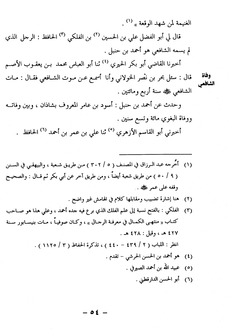 قَالَ لِي أَبُو الْفَضْلِ عَلِيُّ بْنُ الْحُسَيْنِ2 بْنِ الْفَلَكِيِّ3 الْحَافِظُ: الرَّجُلُ الَّذِي لَمْ يُسَمِّهِ الشَّافِعِيُّ هُوَ أَحْمَدُ بْنُ حَنْبَلٍ.