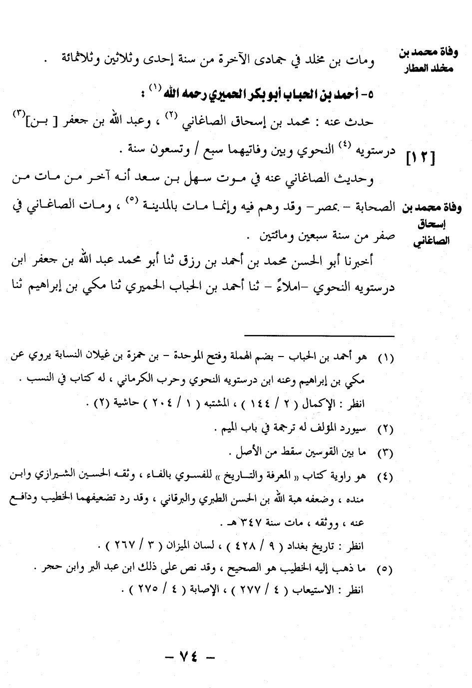 وَحَدِيثُ الصَّاغَانِيِّ عَنْهُ فِي مَوْتِ سَهْلِ بْنِ سَعْدٍ أَنَّهُ آخِرُ مَنْ مَاتَ مِنَ الصَّحَابَةِ – بِمِصْرَ – وَقَدْ وهم فيه وَإِنَّمَا مَاتَ بِالْمَدِينَةِ5، وَمَاتَ الصَّاغَانِيُّ فِي صَفَرٍ مِنْ سَنَةِ سَبْعِينَ وَمِائَتَيْنِ.