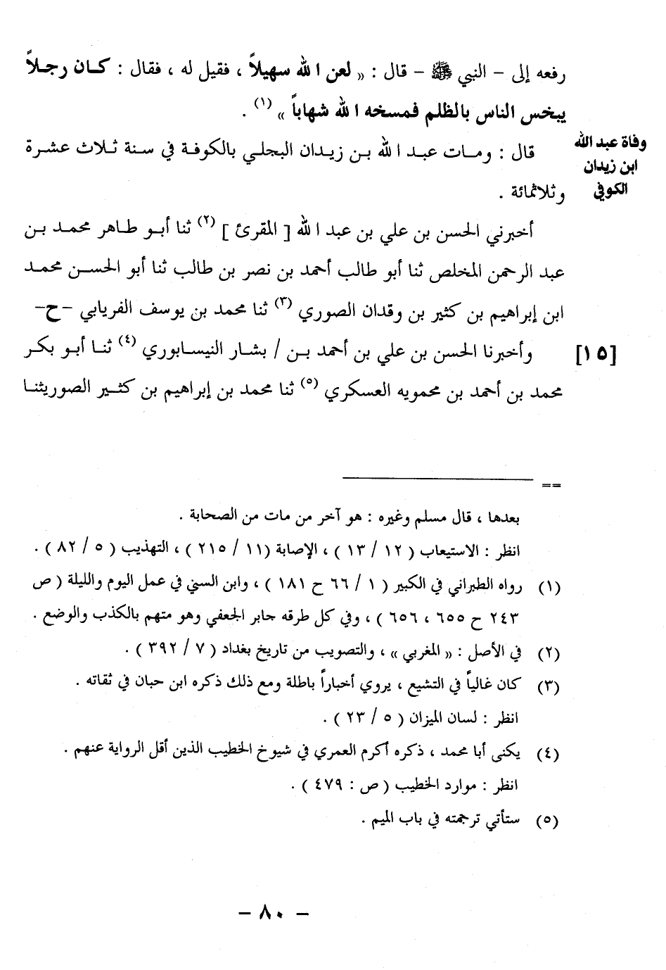 رَفَعَهُ إِلَى – النَّبِيِّ صَلَّى اللَّهُ عَلَيْهِ وَسَلَّمَ – قَالَ: "لَعَنَ اللَّهُ سُهَيْلا، فَقِيلَ لَهُ، فَقَالَ: كَانَ رَجُلا يُبْخِسُ النَّاسَ بِالظُّلْمِ فَمَسَخَهُ اللَّهُ شِهَابًا" 1.