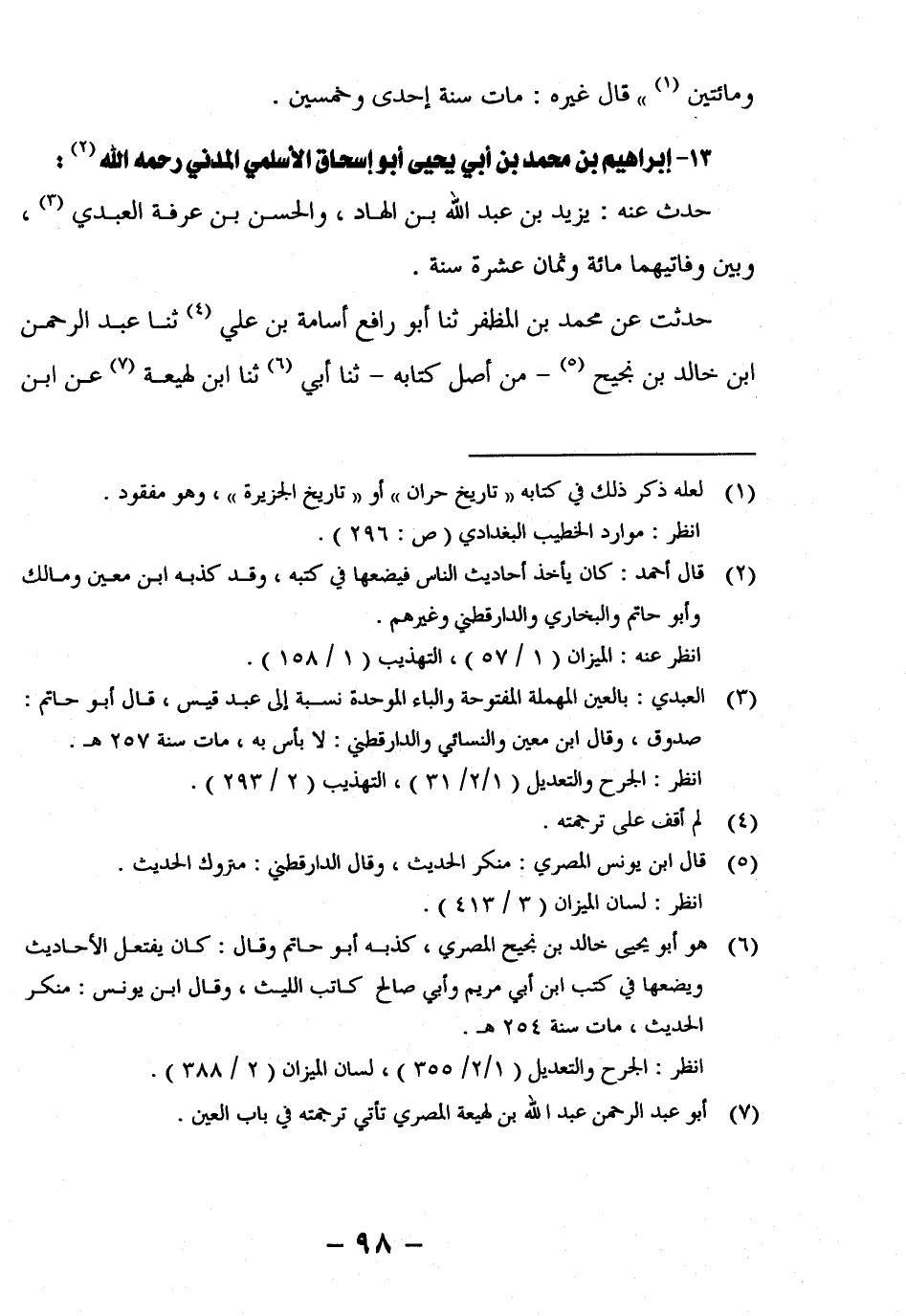 13- إِبْرَاهِيمُ بْنُ مُحَمَّدِ بْنِ أَبِي يَحْيَى أَبُو إِسْحَاقَ الأَسْلَمِيُّ الْمَدَنِيُّ رَحِمَهُ اللَّهُ2: