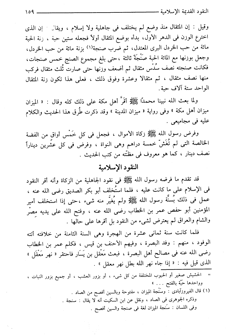 ولما بعث الله نبينا محمدا صلى الله عليه وسلّم أقرّ أهل مكة على ذلك كله وقال: «الميزان ميزان أهل مكة» وفي رواية «ميزان المدينة» وقد ذكرت طرق هذا الحديث والكلام عليه في مجاميعى.