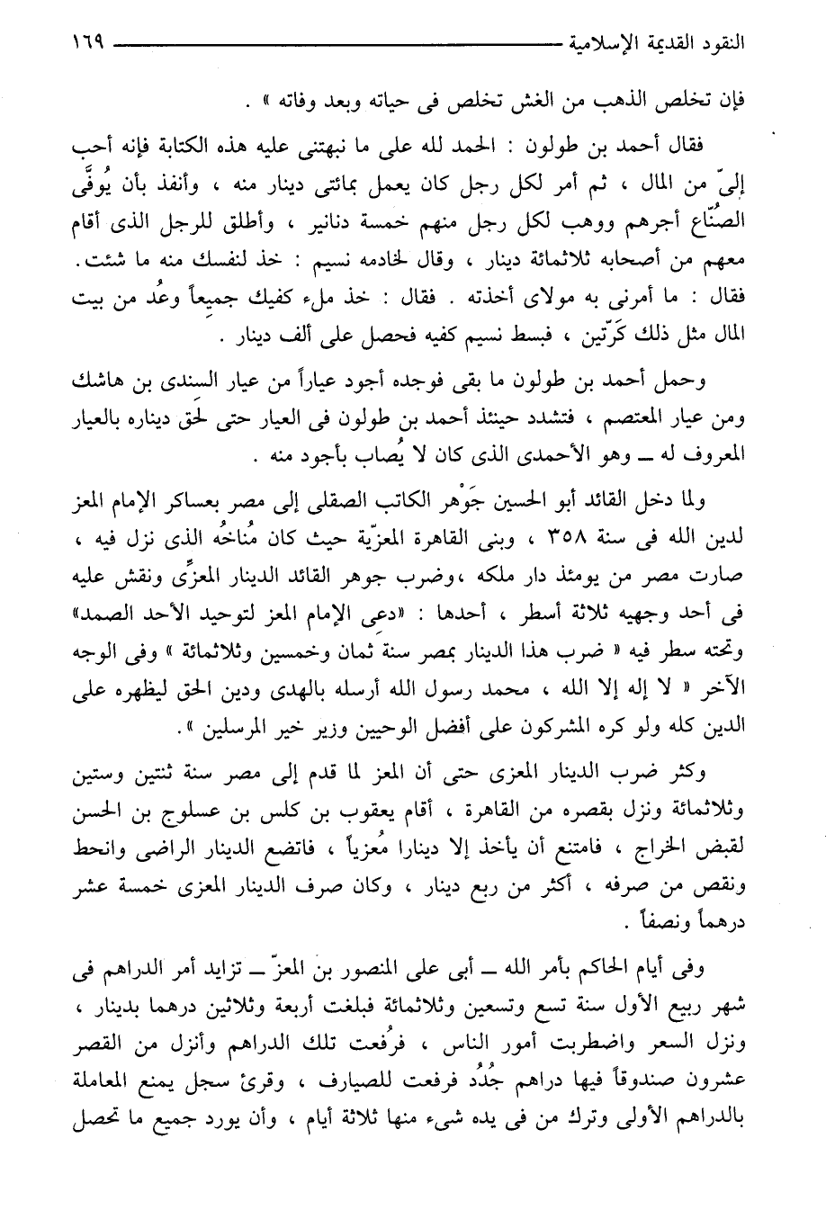 وحمل أحمد بن طولون ما بقى فوجده أجود عيارا من عيار السندى بن هاشك ومن عيار المعتصم، فتشدد حينئذ أحمد بن طولون في العيار حتى لحق ديناره بالعيار المعروف له- وهو الأحمدى الذى كان لا يصاب بأجود منه.