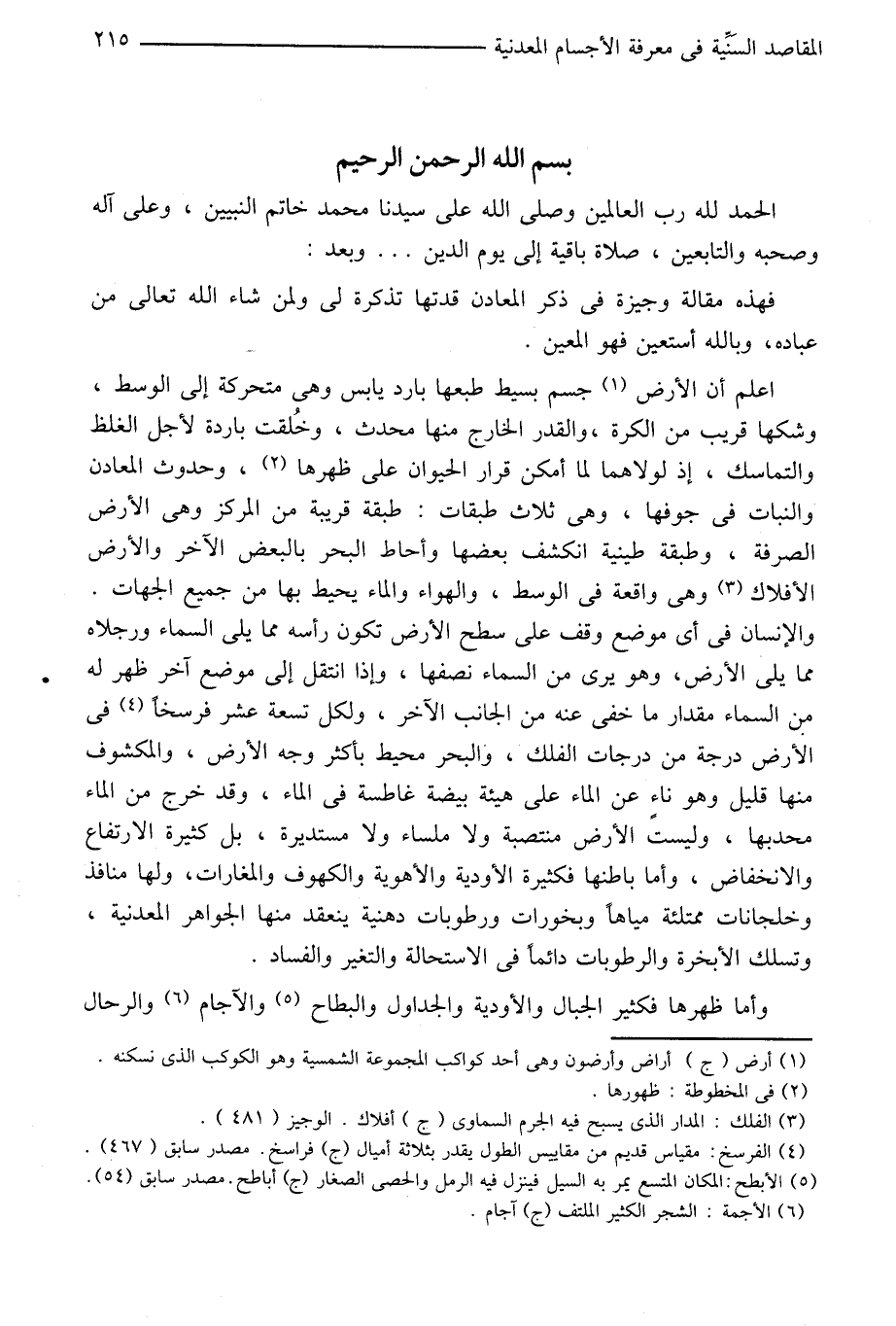 فهذه مقالة وجيزة في ذكر المعادن قدتها تذكرة لى ولمن شاء الله تعالى من عباده، وبالله أستعين فهو المعين.