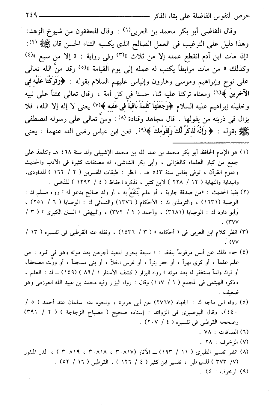 وقال القاضى أبو بكر محمد بن العربى «1» : وقال المحققون من شيوخ الزهد:
