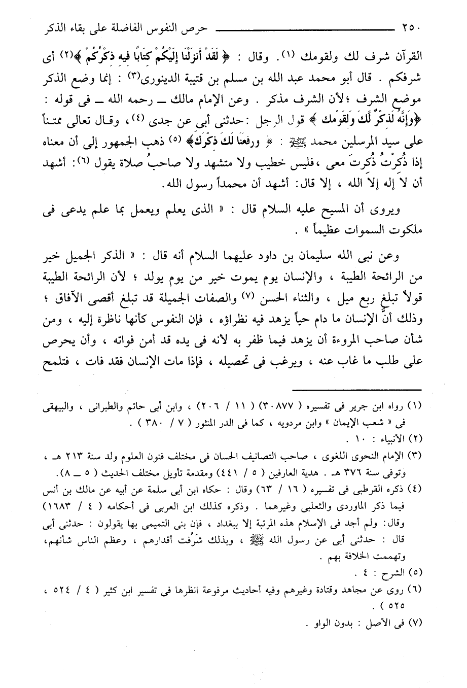 «2» أى شرفكم. قال أبو محمد عبد الله بن مسلم بن قتيبة الدينورى «3» : إنما وضع الذكر موضع الشرف؛ لأن الشرف مذكر. وعن الإمام مالك- رحمه الله- فى قوله: