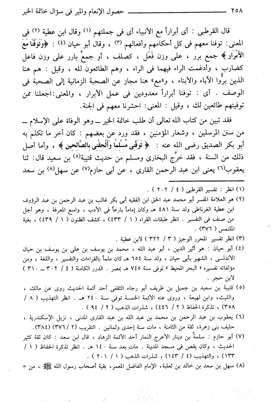 فقد تبين من كتاب الله تعالى أن طلب خاتمة الخير- وهو الوفاة على الإسلام- من سنن المرسلين، وشعار المؤمنين، فقد ورد عن بعضهم: كان آخر ما تكلم به أبو بكر الصديق رضى الله عنه: تَوَفَّنِي مُسْلِماً وَأَلْحِقْنِي بِالصَّالِحِينَ