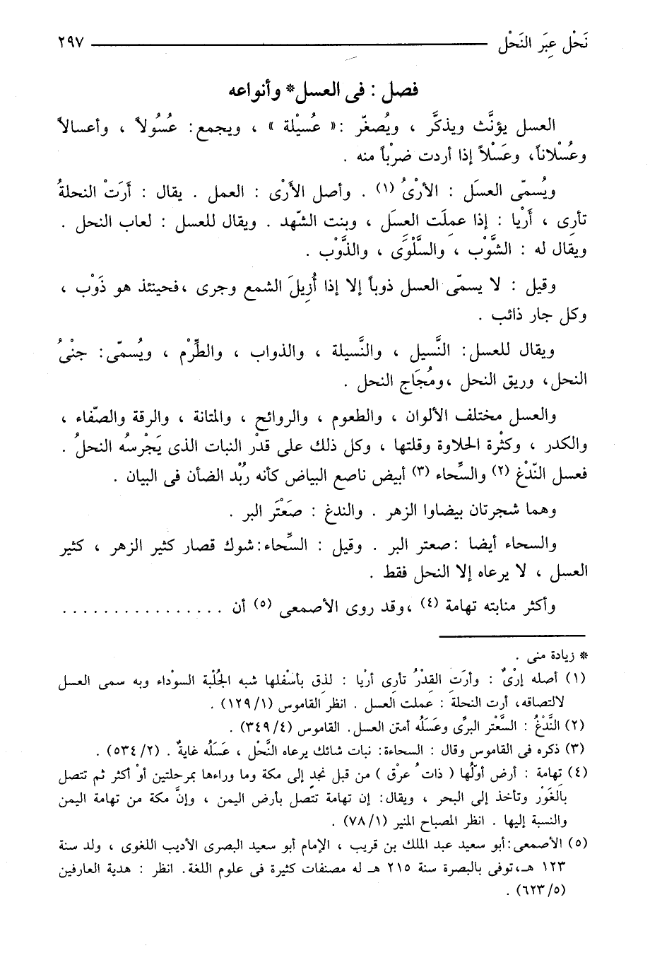 فعسل النّدغ «3» والسّحاء «4» أبيض ناصع البياض كأنه ربد الضأن في البيان.