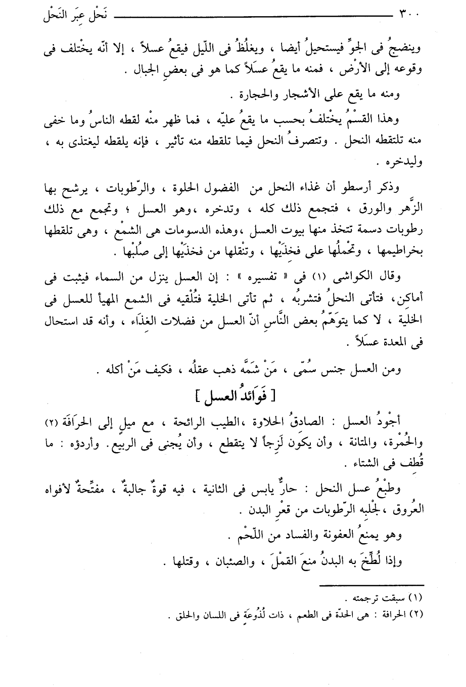 وينضج في الجوّ فيستحيل أيضا، ويغلظ في اللّيل فيقع عسلا، إلا أنّه يختلف في وقوعه إلى الأرض، فمنه ما يقع عسلا كما هو في بعض الجبال.