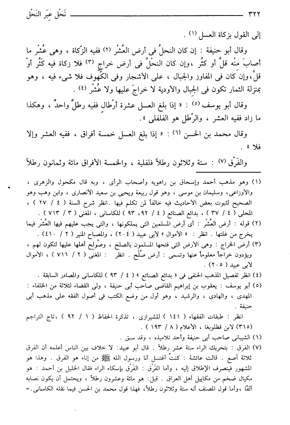 وقال محمد بن الحسن «6» : «إذا بلغ العسل خمسة أفراق، ففيه العشر وإلا فلا» .
