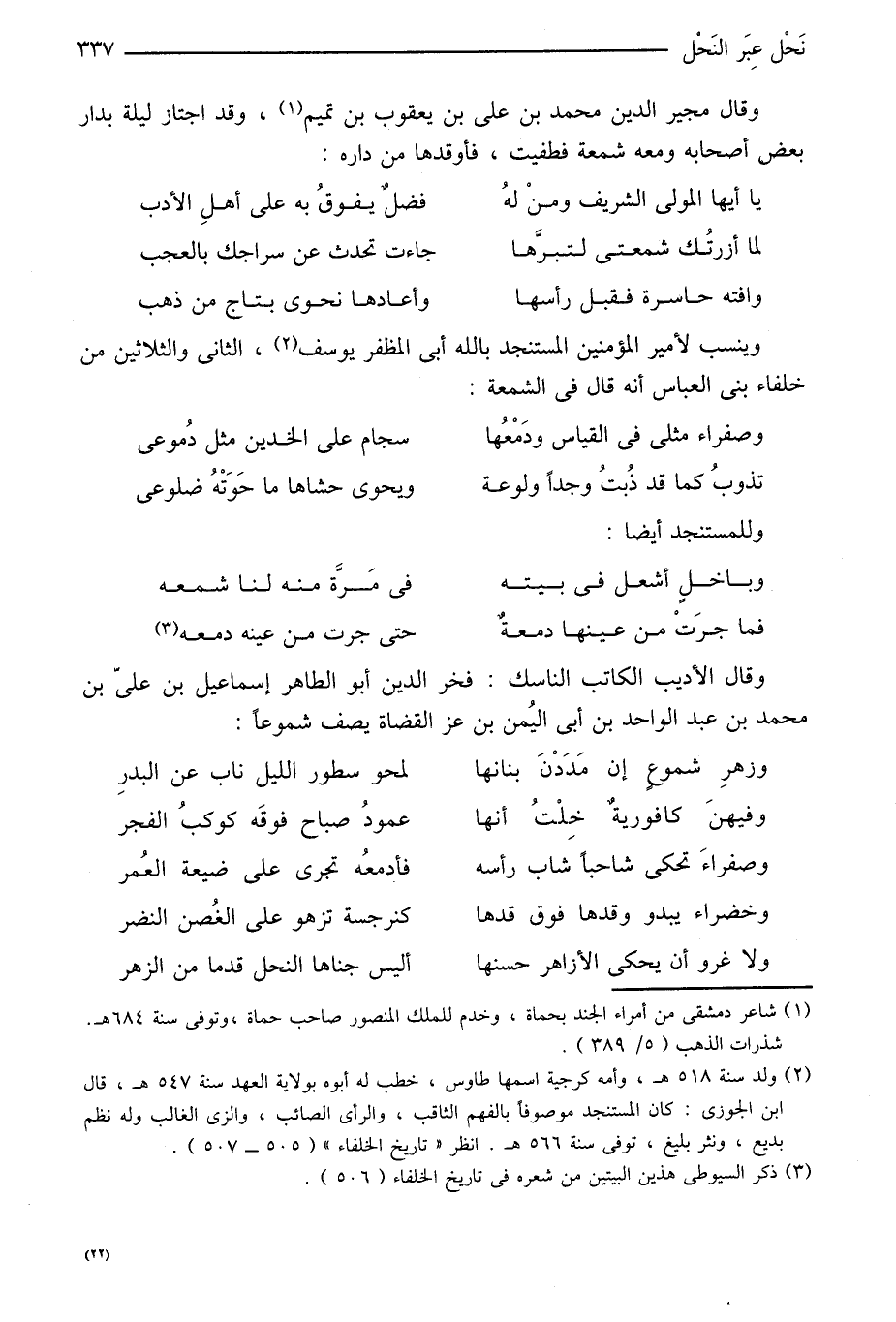 وينسب لأمير المؤمنين المستنجد بالله أبي المظفر يوسف «2» ، الثانى والثلاثين من خلفاء بنى العباس أنه قال في الشمعة: