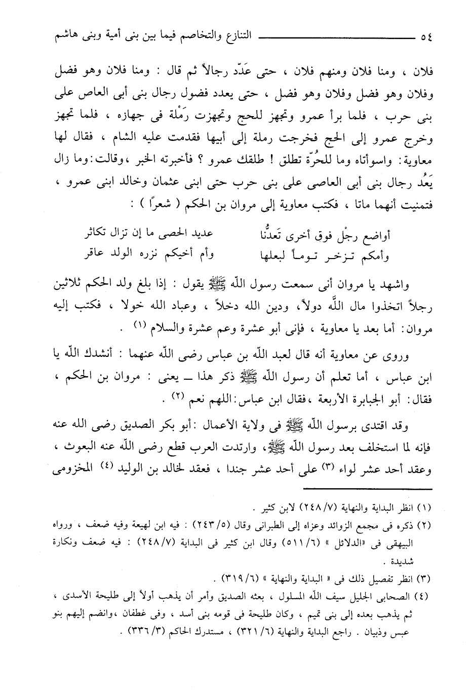 وروى عن معاوية أنه قال لعبد الله بن عباس رضى الله عنهما: أنشدك الله يا ابن عباس، أما تعلم أن رسول الله صلى الله عليه وسلّم ذكر هذا- يعنى: مروان بن الحكم، فقال: أبو الجبابرة الأربعة، فقال ابن عباس: اللهم نعم «2» .