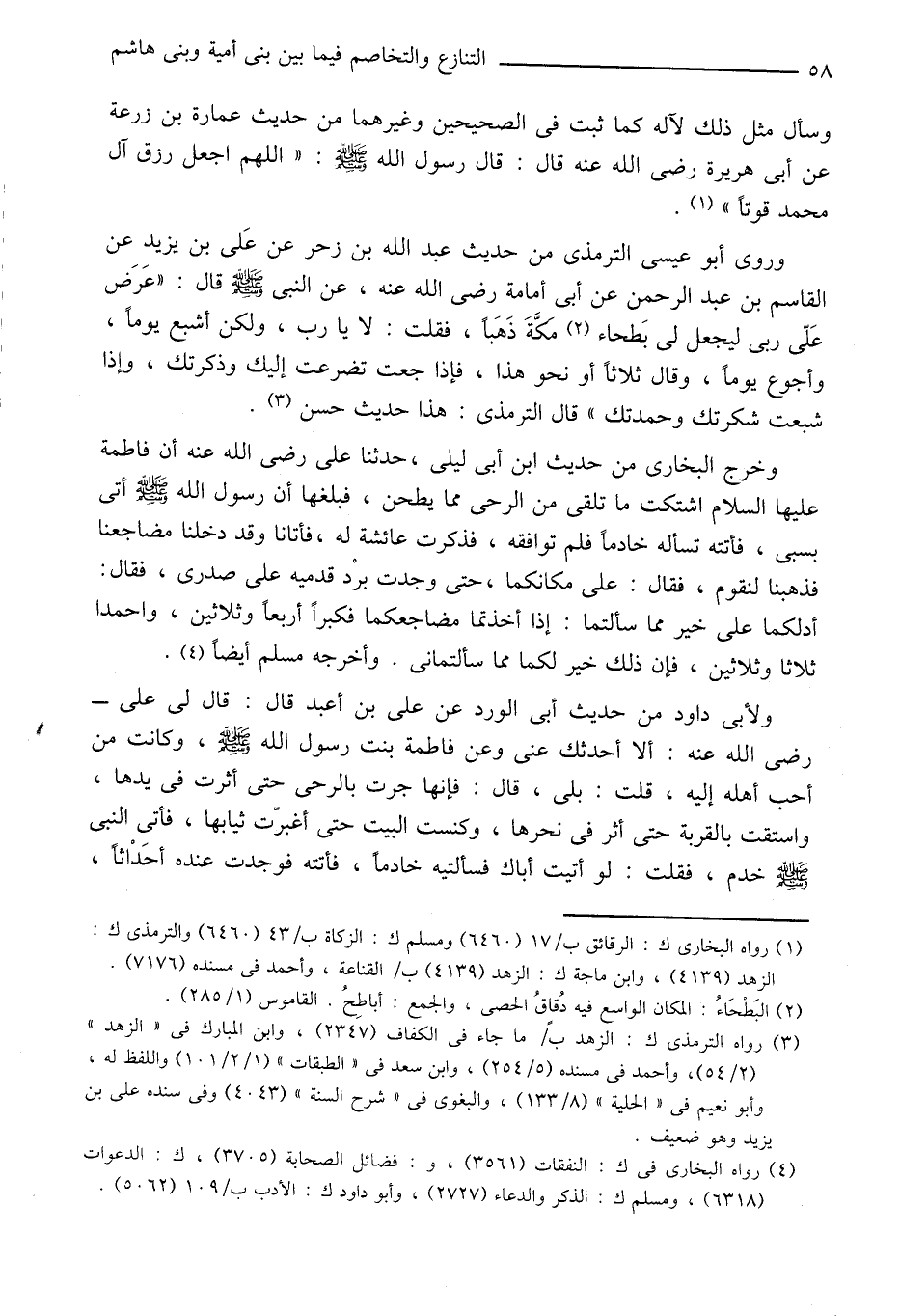 وسأل مثل ذلك لآله كما ثبت في الصحيحين وغيرهما من حديث عمارة بن زرعة عن أبى هريرة رضى الله عنه قال: قال رسول الله صلى الله عليه وسلّم: «اللهم اجعل رزق آل محمد قوتا» «1» .