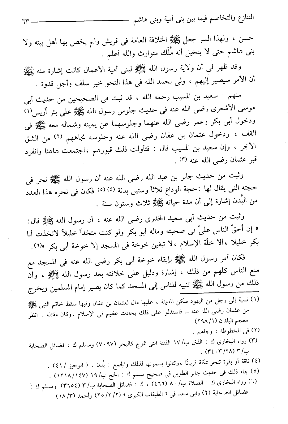 حسن، ولهذا السر جعل صلى الله عليه وسلّم الخلافة العامة في قريش ولم يخص بها أهل بيته ولا بنى هاشم حتى لا يتخيل أنه ملك متوارث والله أعلم.
