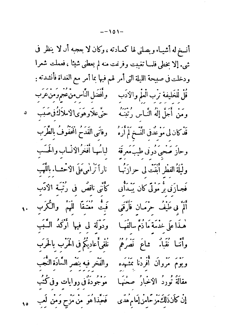 قُل لِلْخَلِيفةِ تِرْبِ الْعِلْمِ والأدَبِوأَفْضَلِ النَّاسِ مِنْ عُجْمٍ وَمِنْ عَرَبِ